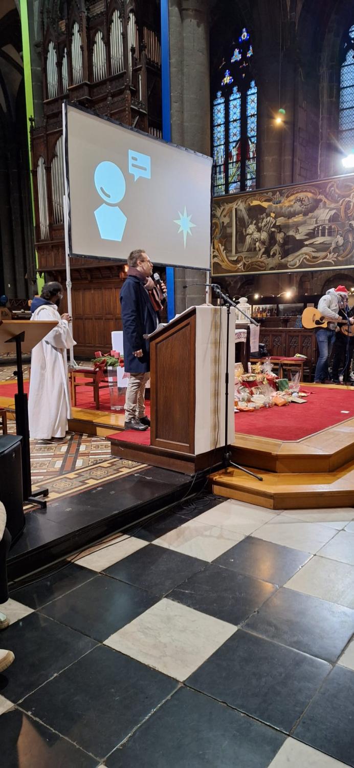 Ce moment marquait également la clôture de notre action du calendrier de l'Avent inversé, organisée en association avec La Bulle d'air à Seraing, où chacun a pu amener un petit cadeau afin de permettre aux familles en difficulté de célébrer Noël dans la joie (ou simplement la fin d’année pour les non-chrétiens).